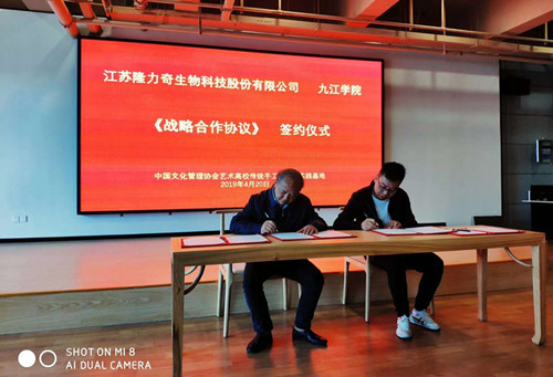 在查振华副董事长等领导的见证下,公司党委书记王春生与江苏隆力奇生物科技股份有限公司董事长特别助理兼人事部总监张宇签订校企战略合作协议。