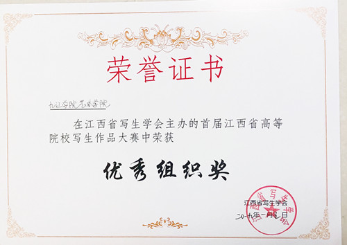 为促进全省高等院校员工的写生创作热情,加强各高校艺术类师生的教学交流,由江西省写生学会举办首届江西省高等院校写生大赛。此次比赛参赛单位有14所高校,入围参赛作品2400余件。经专家评审,威廉希尔足球官方网站在此次比赛,喜获金奖6项,银奖12项,铜奖20项,优秀奖22项,获奖数量在省内院校中名列前茅。威廉希尔足球官方网站荣获优秀组织奖。