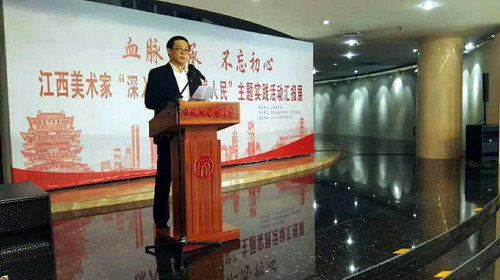 开幕式前,中国文联党组书记李屹、副主席李前光,中国美协分党组书记徐里在江西省文联副主席鄢平原的陪同下参观了展览。中国文联党组书记、副主席李屹、中国文联党组成员、副主席李前光,中国文联办公厅主任邓光辉、国际联络部主任董占顺、理论研究室主任庞井君,中国书法家协会分党组书记陈洪武、美术艺术中心主任丁杰,中国音乐家协会副秘书长熊纬等出席开幕式。中国美术家协会分党组书记徐里,江西省文联党组成员、副主席鄢平原分别致辞。江西省美术家协会主席王向阳主持开幕式。