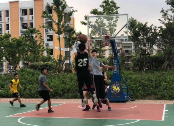 随着裁判的哨声吹响,巅峰对决随即展开。篮球手们抢球、断球、防守、进攻,默契传球、完美配合。球员们本着“友谊第一,比赛第二”的运动精神,严格遵守比赛规则。场下的同学们也积极为球员们助威呐喊,每一次进球都引来同学们的鼓掌喝彩。双方队员都竭尽全力,不愿放弃每一次进攻的机会,尽情发挥着自己的球技,显现着队员们的默契。“永富队”凭借默契的配合和严密的防守,最终赢得冠军。