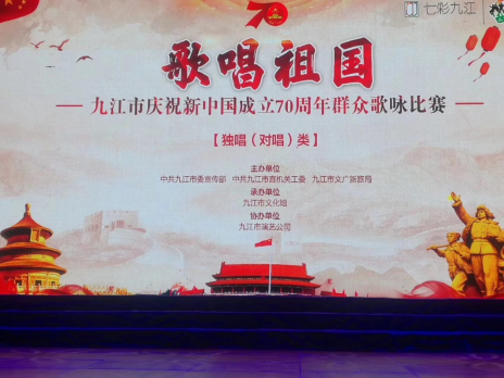 9月2日上午,由九江市委宣传部、九江市直机关工委、九江市文广新局联合主办,九江市文化馆承办的-----歌唱祖国----九江市庆祝新中国成立70周年群众歌咏比赛在九江市文化艺术中心成功举办。