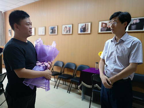 9月23日上午,副董事长查振华教授专程来到威廉希尔足球官方网站代表公司党委书记赵伟、董事长刘晓东慰问近期在第十三届全国美展中取得骄人成绩的王静漪、谭丹武两位青年老师和在“第七届江西艺术节•第二届江西声乐艺术节比赛”中荣获美声组一等奖的孔江闽老师。