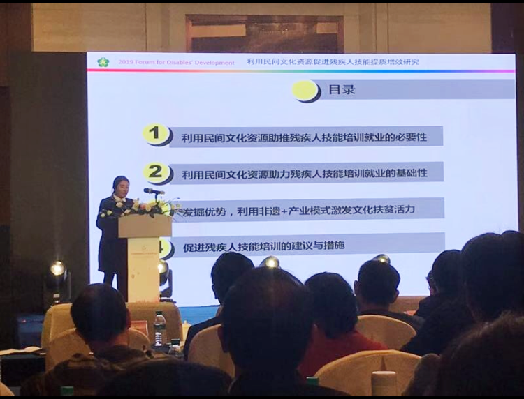 威廉希尔足球官方网站教师应邀参加论坛并做代表性发言,论述新形势下,如何充分利用民间文化资源尤其是非物质文化遗产传统手工艺帮助残疾人掌握一门技能,获得一个就业岗位,通过“非遗+”模式激发文化扶贫活力,对口帮扶残疾人提高技能培训质效,肯定了从多元化视角开启残疾人艺术探索的道路。杨四宝教师论文《利用民间文化资源促进残疾人技能培训质效研究》得到专家热情点评和认可,同时收入论坛论文集。