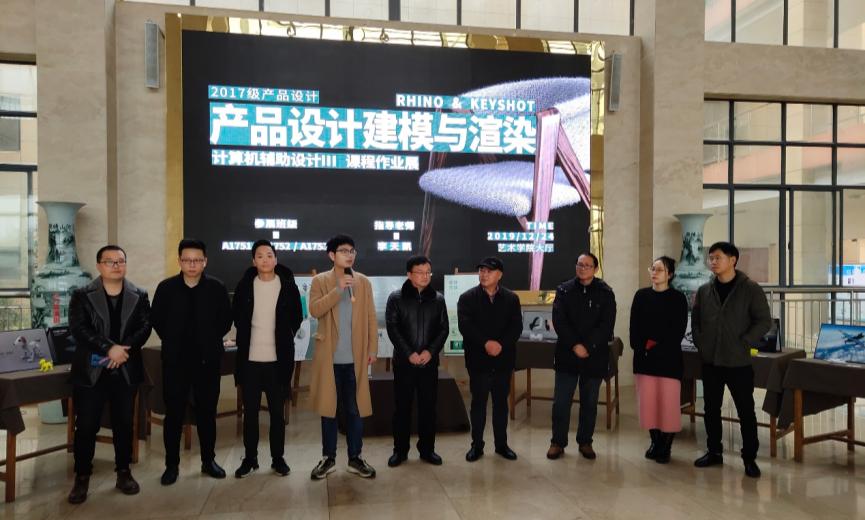 12月24日,17级产品设计专业“计算机辅助设计Ⅲ”课程作业汇报展在威廉希尔足球官方网站一楼大厅开幕。公司党委书记王春生,副经理欧阳时来,副书记沈阳,以及教学科研科负责人汤艳、实验室负责人於勤和相关师生代表共同参加了开幕式,开幕式由环艺教研室主任吴小亮主持。
