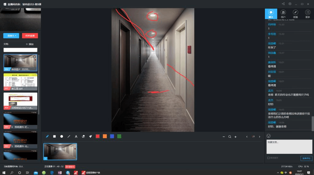 在环艺教研室,如副教授吴小亮《产品速写》;詹伟国教师的《室内设计2》与《公共空间设计》。线上示范教学,有效批改作业,不断更新方式,对于新的教学方式,慢慢的在不断摸索和互相分享中;多种渠道答疑,确保学习效果。