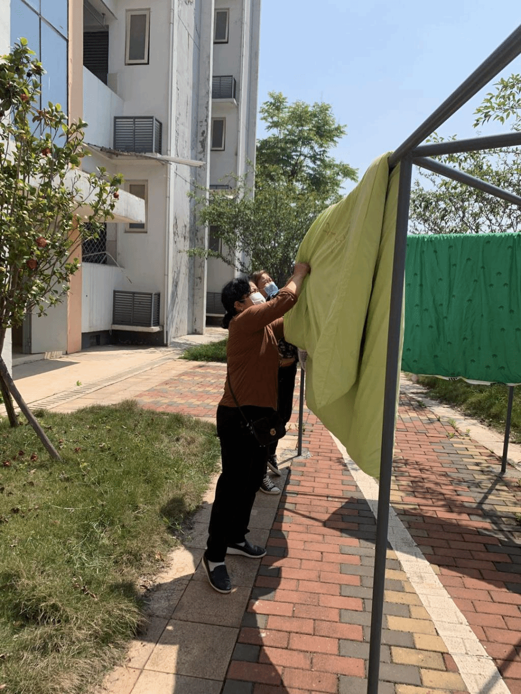 同学们担心的问题,威廉希尔足球官方网站的领导老师早已考虑到了。由学院员工宿舍理事会组织,员工线上申请,4月27日—4月29日,趁着温暖的阳光,亲爱的宿管阿姨和辅导员们帮助同学们晒了234间宿舍共计698床被子。