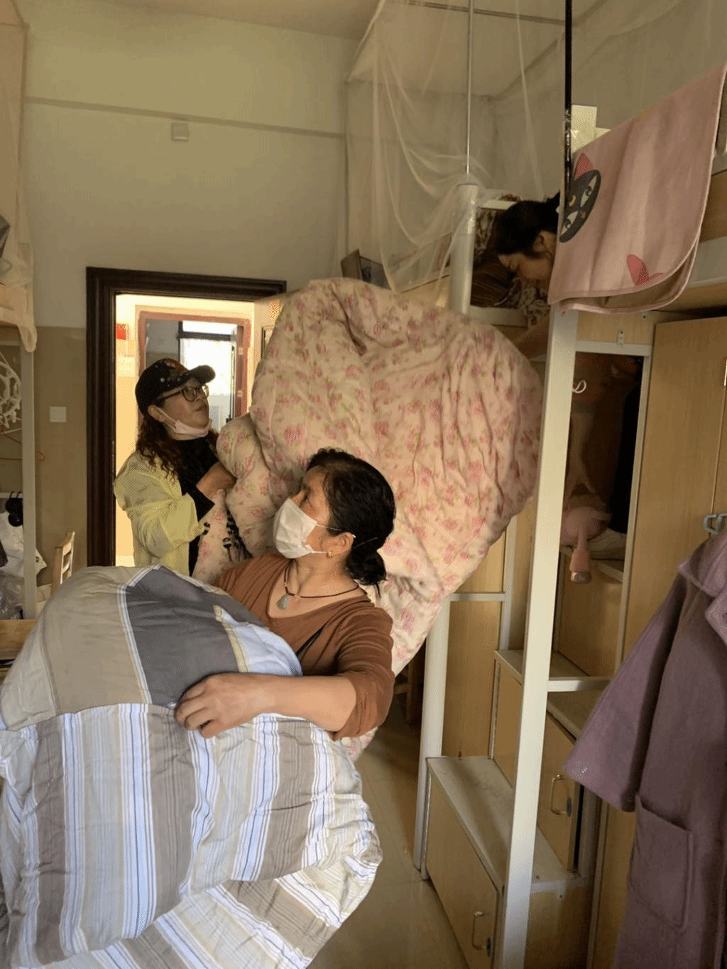 宿管阿姨和辅导员们会根据员工预约需求给每条被子做好标记,确保有条不紊。