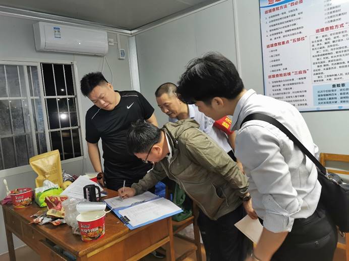 四位党员同志在在11日凌晨到达威廉希尔体育登录入口防汛值班处,首先认真学习了巡堤查险的“46553”要诀及防汛的各项要求,随后在欧阳时来副经理的带领下,每隔一个小时对堤口可能存在的安全隐患进行仔细排查,做好巡堤查险的记录,不放过一处隐患、不忽视一处细节,确保堤口零风险、零渗水。