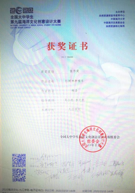 由国家资源部主办的全国大中员工第九届海洋文化创意设计大赛中,公司环境设计专业杨浩等六名同学获得六项“佳作奖”、“优秀奖”。