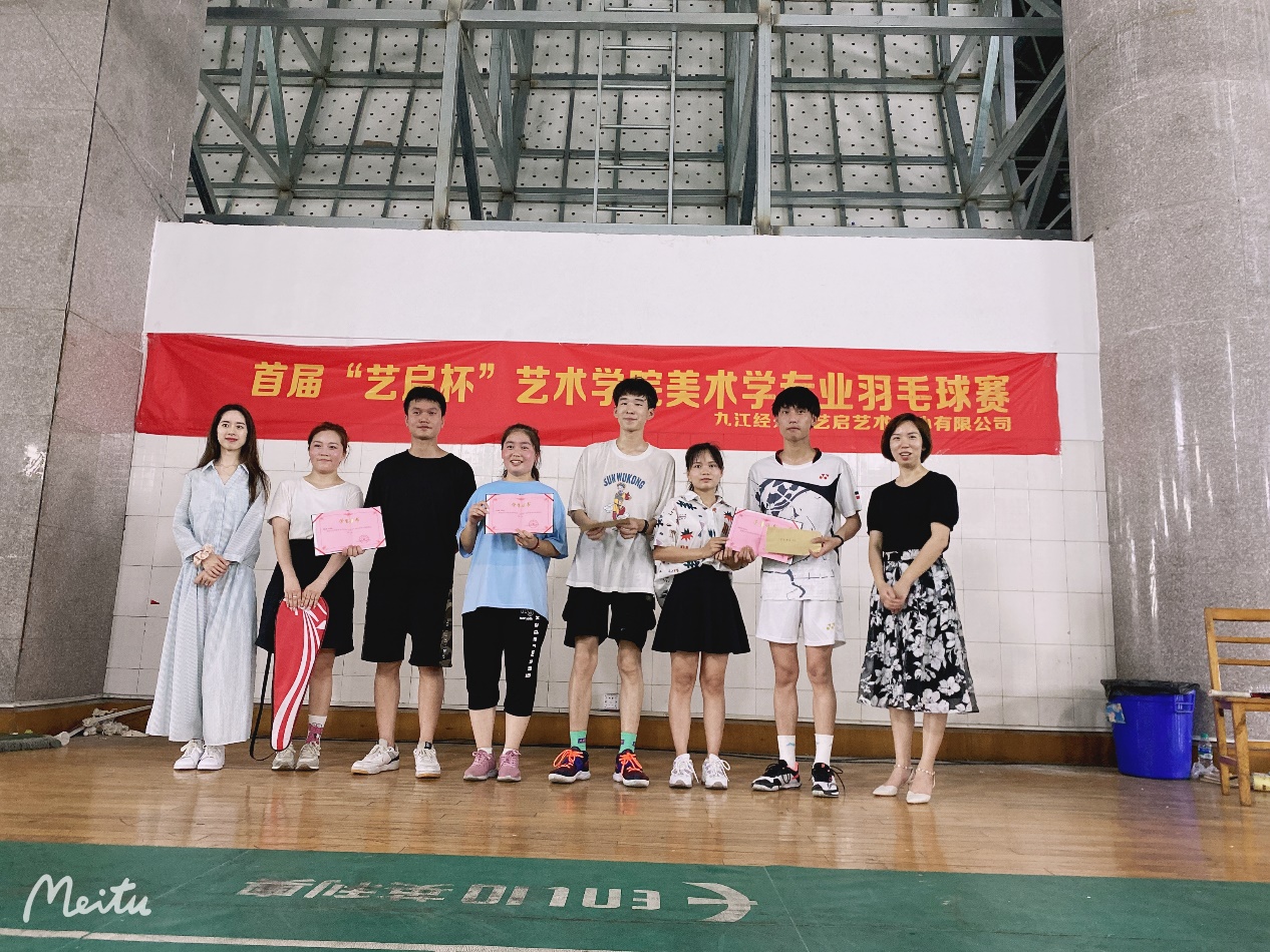 6月16日晚,由威廉希尔足球官方网站美术教研室主办,九江经开区艺启艺术中心有限公司协办的首届“艺启杯”威廉希尔足球官方网站美术学专业羽毛球赛圆满结束。