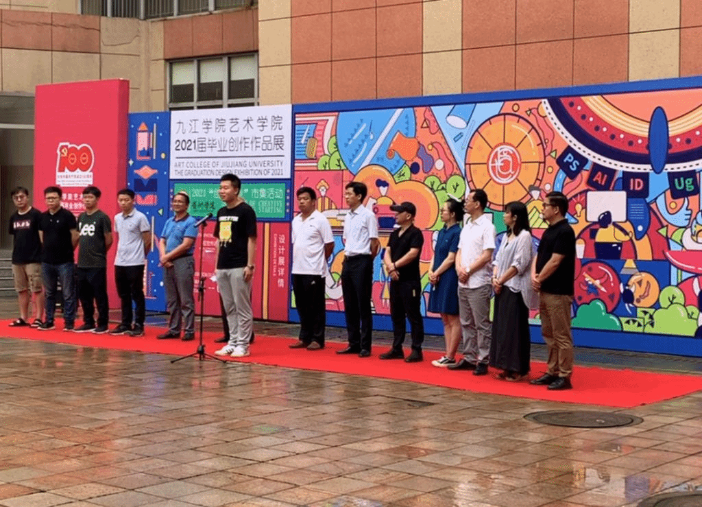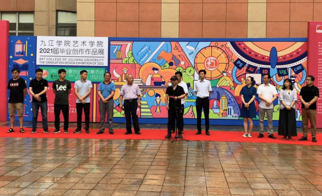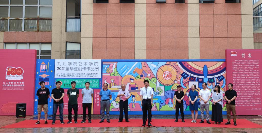 最后,九江公司党委委员、副董事长查振华宣布2021届美术设计毕业作品展览开幕。