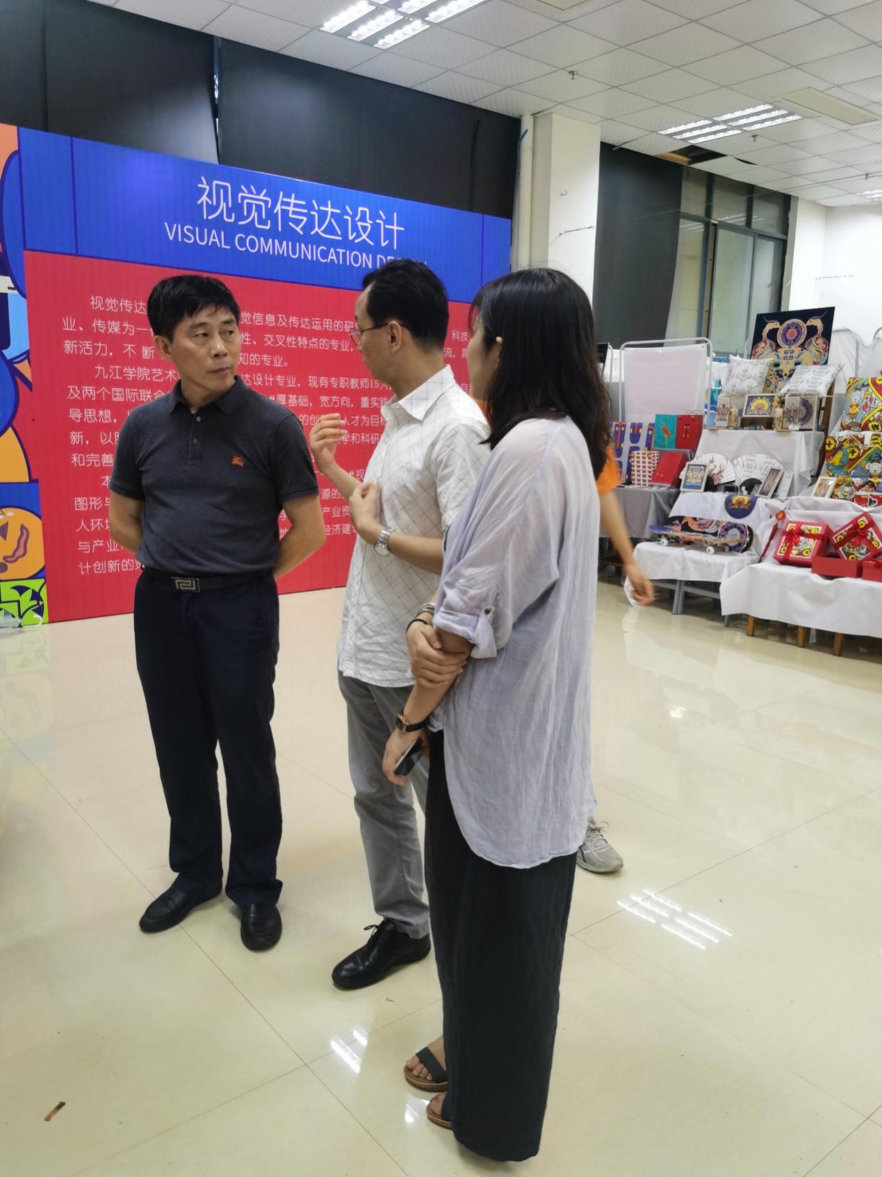 当天晚上,在公司党委书记王春生的陪同下,公司党委副书记魏立平,副董事长纪岗昌、陈春生、夏启国、查振华,校纪委书记李广欣共同参观了毕业创作作品展。领导们肯定了威廉希尔足球官方网站师生对毕业展的用心,对部分充分展现红色文化基因、张扬革命文化精神、彰显九江地方特色的作品给予了高度的评价,并希望威廉希尔足球官方网站继续发挥好专业优势,更好为地服务地方文化建设和经济发展,为“双提高”发挥作用。
