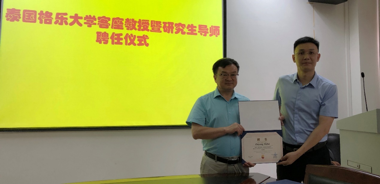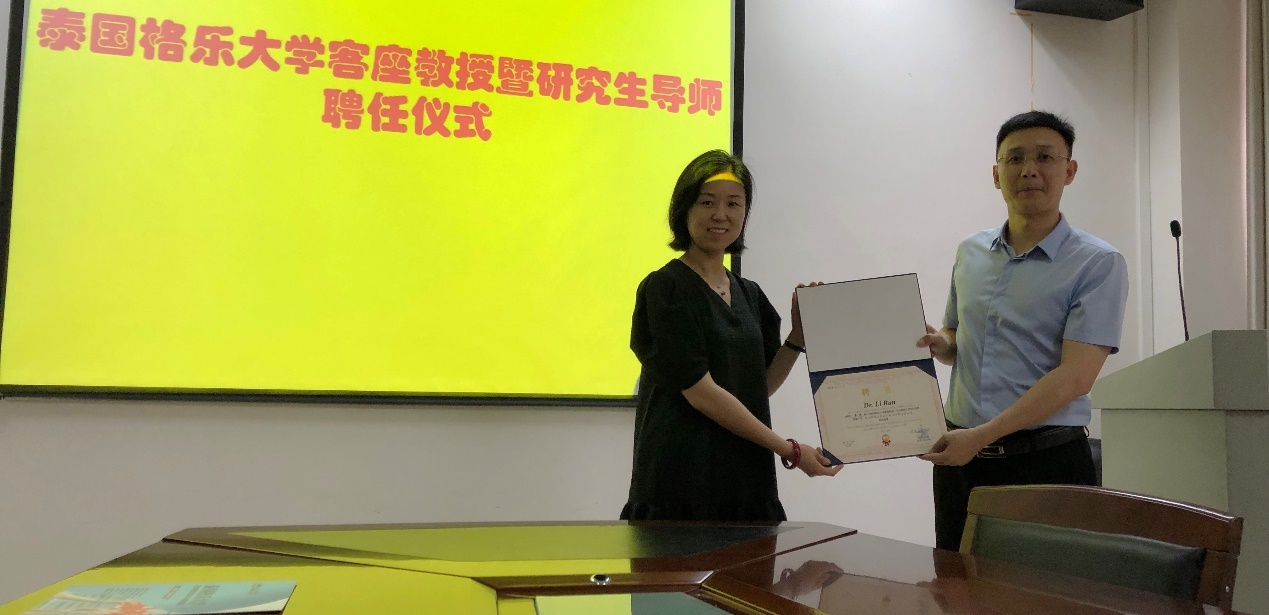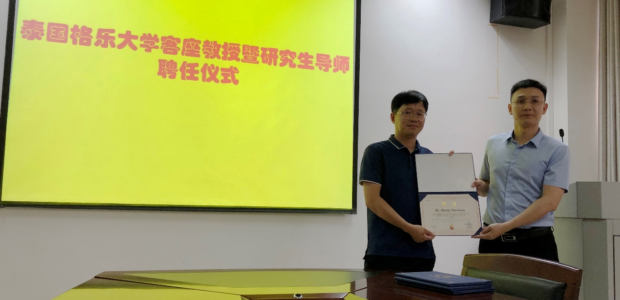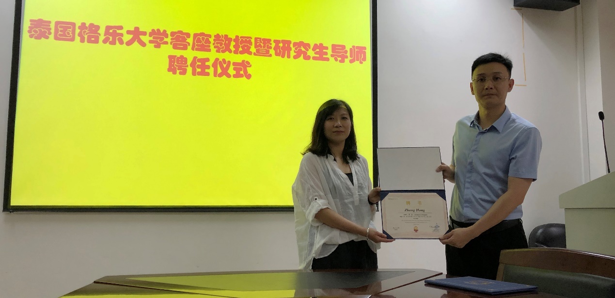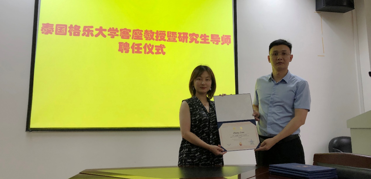 泰国格乐大学魏广冰副经理分别为5名受聘教师颁发了聘任证书。