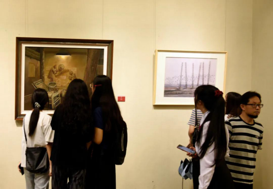 开幕式后,领导、嘉宾和师生参观了作品展。
