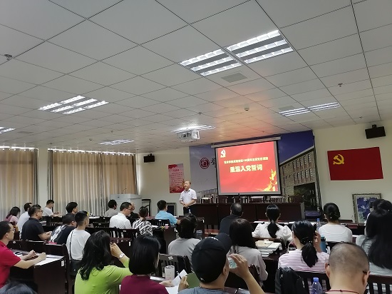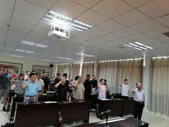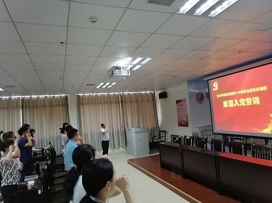 在观看完视频直播之后,党员们在王春生同志的带领下,一起面向鲜红的党旗,庄重地举起右拳重温入党誓词,高亢浑厚的声音回荡在会议室里。在庄严雄浑的宣誓声中,每名党员都用入党誓词再一次唤醒和激发着自己的党性观念、入党初心,铭记对党和人民的庄严承诺,强化共产主义的理想信念,大家从内心深处接受了一次的党性教育的洗礼。