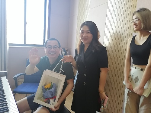 第一节课开始之前,慰问小队分别来到艺术楼各个教室慰问老师。把一束束表达祝福的向日葵花送到老师们手上,并向教师们致以节日的祝福,并致以诚挚的问候——“老师,您辛苦了!”老师们在自已的节日里收获惊喜、感受公司党组织的关爱!