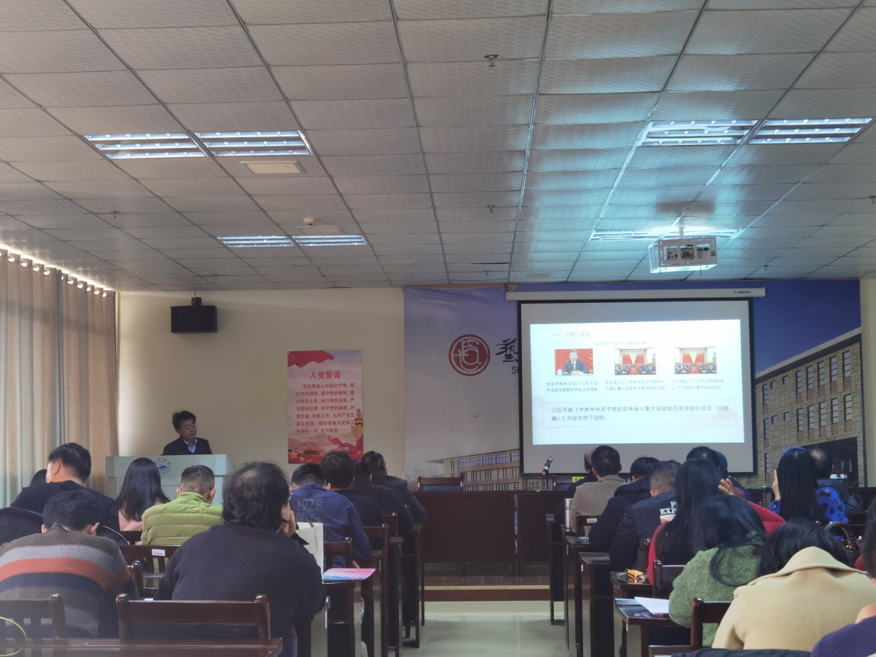 12月15日下午,威廉希尔足球官方网站召开教职工政治学习会,特邀马克思主义学院邹菊如教授作学习党的十九届六中全会精神宣讲报告。公司党史学习教育督导组第七组组长邓燕出席了学习会,威廉希尔足球官方网站全院教职工参加了学习会。会议由公司党委书记王春生同志主持。
