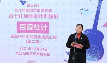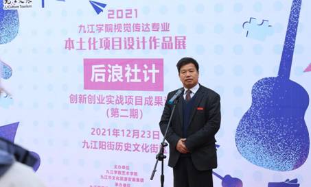 12月23日上午,第二期“后浪社计”创新创业实战项目成果汇报暨2021威廉希尔体育登录入口视觉传达设计专业本土化项目设计作品展在九江“阳街”历史文化街区开展。本次展览活动由威廉希尔足球官方网站和九江市文化旅游发展集团联合主办,威廉希尔足球官方网站视觉传达设计教研室和九江市阳街旅游开发有限责任公司承办,共展出了60组作品,是公司视觉传达设计专业2019级和2020级(中俄班)员工围绕九江市本土文化资源,依托九江市文旅产业项目开展的实战项目作品汇报展,展览时间为12月23日至12月26日。