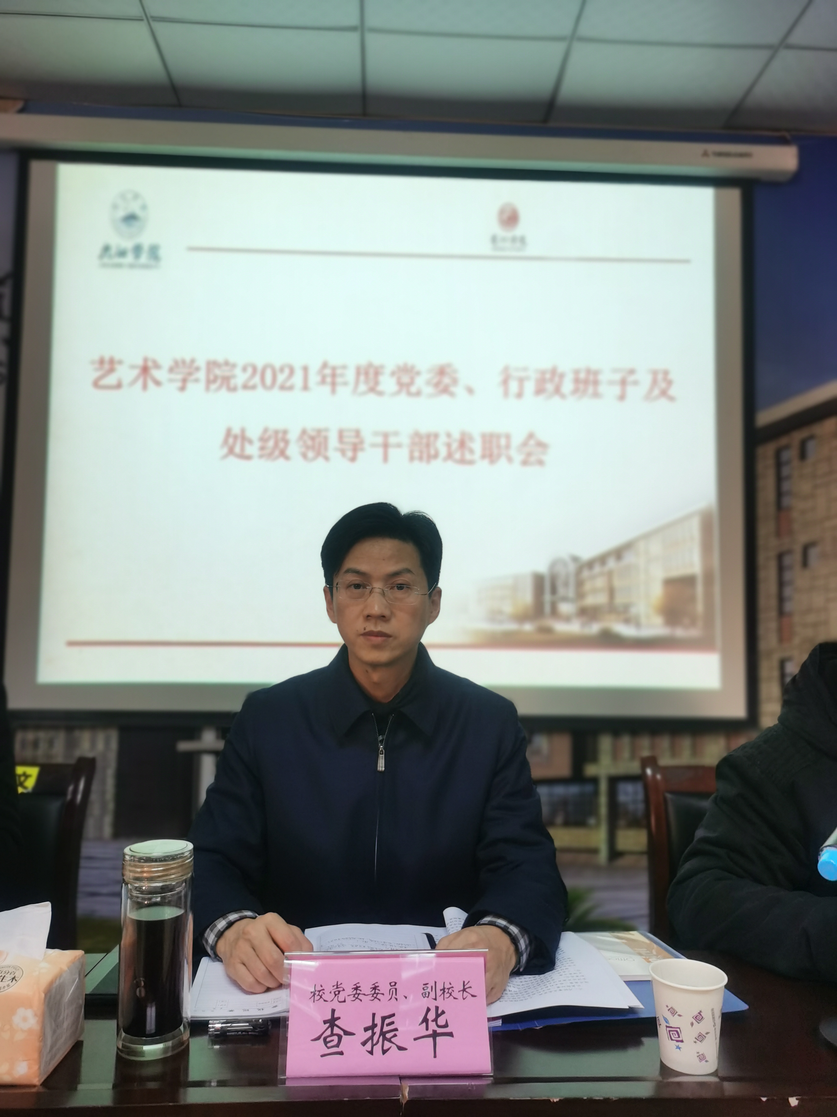 在认真听取了公司党政领导班子工作述职及处级干部述职后,查振华副董事长作了讲话。他首先代表公司党政向威廉希尔足球官方网站全体教职工一年来的努力付出表示感谢!对2021年工作和取得的成绩给予了充分肯定。他说:2021年,威廉希尔足球官方网站的工作可以用8个字来概括:出乎意料,出类拔萃。不少工作取得了历史上的新突破!科研能力服务地方长足进步,团队队伍建设进一步提升,这说明威廉希尔足球官方网站良好氛围初步形成!良好成绩的取得,说明过去的一年里,公司党政班子班子领导有力、年度目标明确、过程执行有力;也是威廉希尔足球官方网站全体教职工奋发有力,争相奋进的结果。查振华副董事长对公司党政班子新的一年工作提出三点希望和要求:一是要深入学习习近平新时代中国特色社会主义思想,坚持党史学习教育常态化,牢记立德树人根本,师德师风建设必须常抓不懈,强化意识形态管理;二是要认清形势,必须充分发挥专业特点和优势,强化集体意识,大力开展文化交流,增强科研能力,继续做好音乐舞蹈专业教师上舞台、美术设计专业教师办展览,不断浓厚学术氛围、提升教师能力;三是要认真谋划,以专业教学为抓手,着力提高教学质量,推动教学和科研团队建设,实现以点带面,不断增强学院发展能力。最后,查振华副董事长向威廉希尔足球官方网站全体教职工致以新年的美好祝愿!