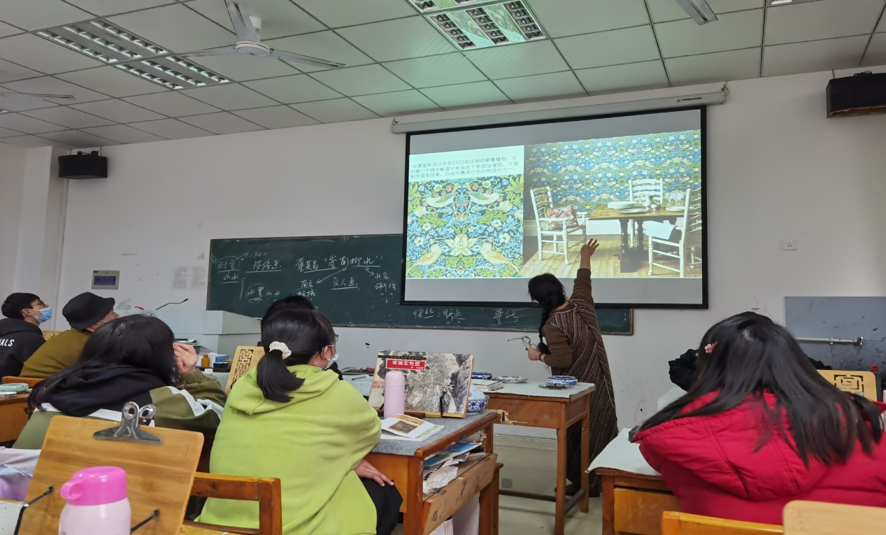课堂上,宮妮老师从英国的"工艺美术运动"到以法国为中心的"新艺术运动",再到"装饰艺术运动"和以"包豪斯"为核心的设计现代主义,从《道德经》和中国古代山水画对欧洲艺术发展的影响,宫老师将中外艺术比较贯穿全课程,旁征博引,深受员工的喜爱。通过宫老师的课,同学们既了解到工艺美术新艺术运动在现代设计的当今社会中起着举足轻重的作用,又了解到中华优秀传统文化对世界艺术发展的作用,增强了中国文化自信。