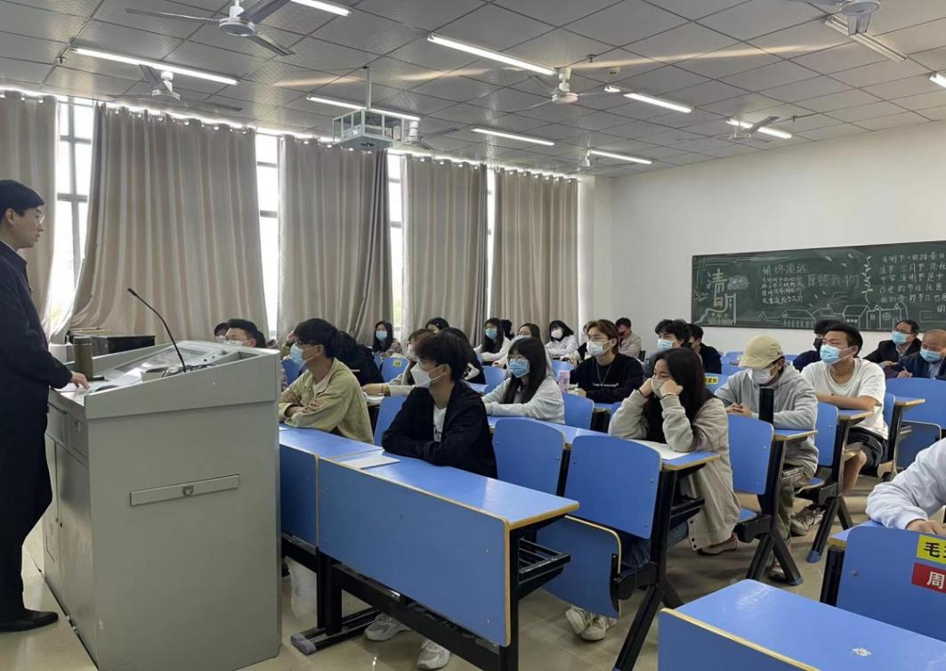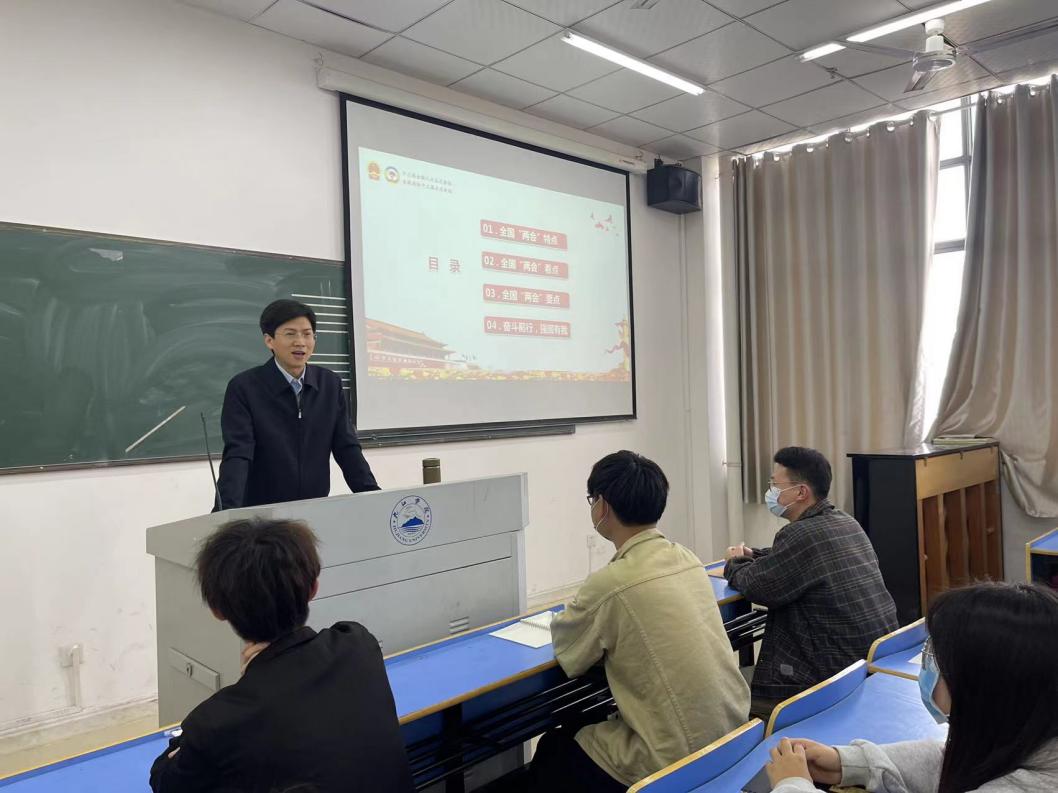 课堂上,查振华副董事长先提问同学最关心什么,再从刚刚结束的清明节假期,眼下的疫情防控工作和俄乌冲突等国际局势,围绕全国“两会”特点,全国“两会”看点,全国“两会”要点及奋斗前行、强国有我四个方面展开讲述,希望同学们深刻领会“两个确立”重要意义,增强“四个意识”、坚定“四个自信”、做到“两个维护”,珍惜美好的大学时光,珍爱生命,不负时代,不负韶华,立大志、明大德、成大才、担大任,为实现中华民族伟大复兴的“中国梦”勤奋学习,不懈奋斗!