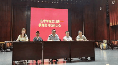 6月6日晚,威廉希尔足球官方网站在艺术楼音乐厅召开2019级师范专业员工教育实习动员大会。学院副经理张甘霖、虞斌、欧阳时来和党委副书记沈杨,学院教学科研管理科、有关研室负责人和2019级师范专业班主任及全体员工参加。动员大会由教学科研管理科副科长潘佳主持。