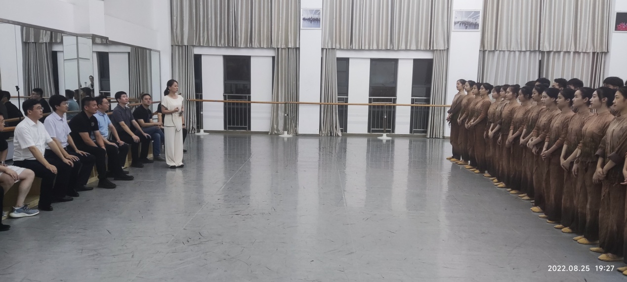 为了高质量办好“喜迎党的二十大、美丽乡村舞起来”——2022中国舞协环境舞蹈展演暨首届江西乡村振兴舞蹈创作展演,8月25日至26日中国舞协分党组成员、秘书长夏小虎一行到九江调研。25日下午,夏小虎在中国舞协活动管理处处长张鹤、江西省文联党组成员作协主席李小军、省舞蹈家协会秘书长钟林、九江市文联党组书记王建新等陪同下来到威廉希尔足球官方网站指导,副董事长查振华和威廉希尔足球官方网站相关领导、教师接待了夏小虎一行。