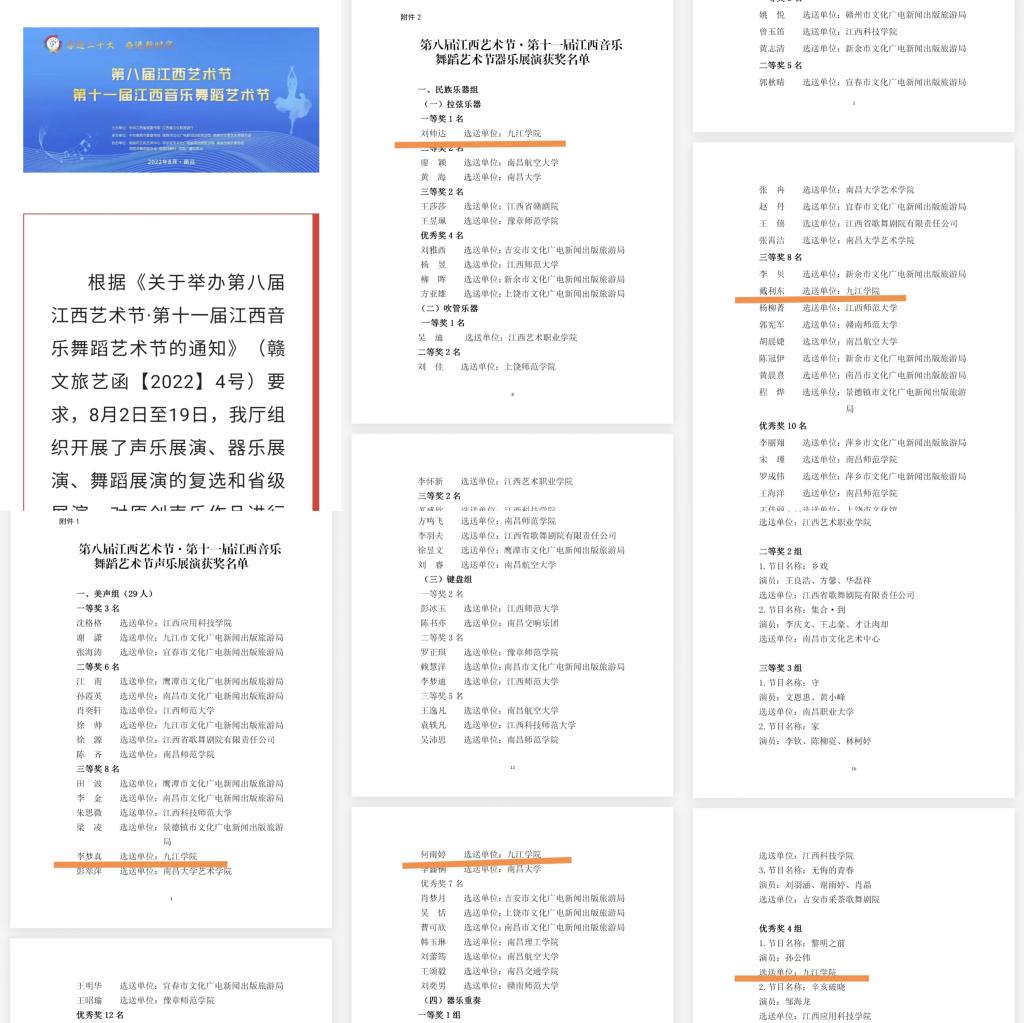 近日,在第八届江西艺术节-第十一届江西音乐舞蹈节获奖结果的公示中获悉,公司参赛的青年教师获得佳绩。其中刘帅达荣获民族乐器组拉弦乐器一等奖(第1名),何雨婷获西洋乐器键盘组三等奖(第9名),戴利东获民族声乐组三等奖(第10名),李梦真获美声组三等奖(第14名),孙公伟获单双三人组优秀奖(第7名,单人舞第2名)。